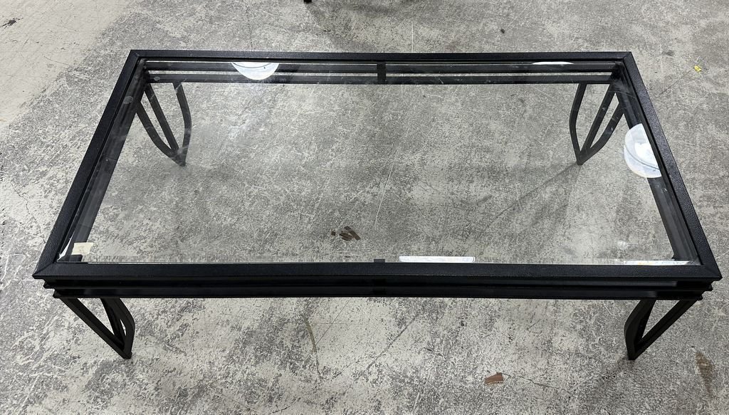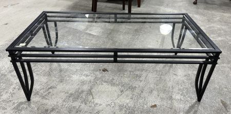 Glass Top Coffee Table, metal framed, 16"h., 48"w. Location Row 3 Glass Top Coffee Table, metal framed, 16"h., 48"w. Location Row 3