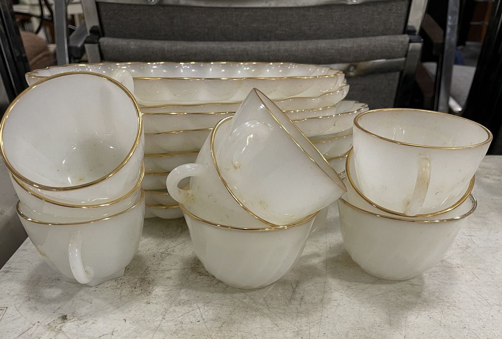 Luncheon Plates and Cups 8 plates and 9 Cups Loc Right Metal Shelves Luncheon Plates and Cups 8 plates and 9 Cups Loc Right Metal Shelves