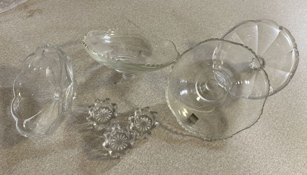 Four Glass Candle Holders, Location Front Shelves Four Glass Candle Holders, Location Front Shelves
