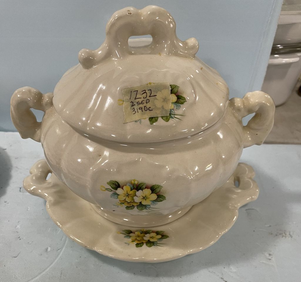 Soup Tureen with under plate 5.5" dia Location Right Metal Shelves Soup Tureen with under plate 5.5" dia Location Right Metal Shelves
