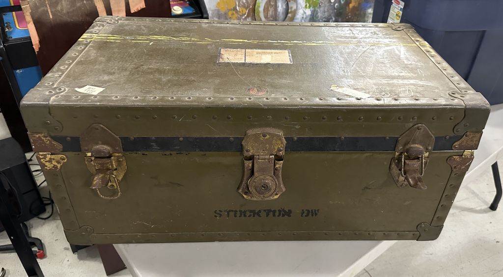 Military Travel Trunk, Location Back Metal Shelves Military Travel Trunk, Location Back Metal Shelves