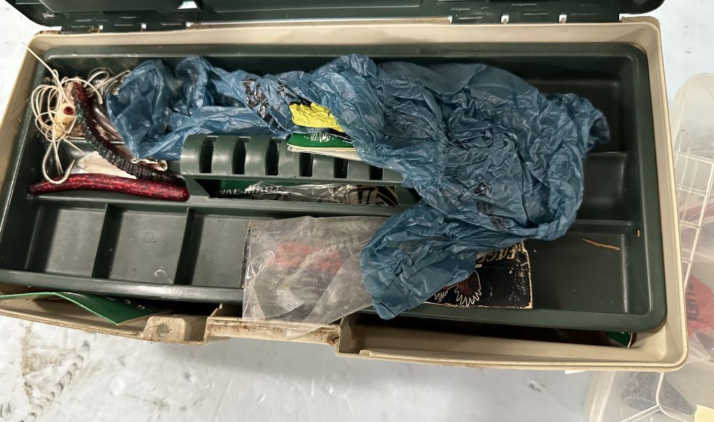 Group of Fishing Equipment and Lures, Location Front Wood Shelves Group of Fishing Equipment and Lures, Location Front Wood Shelves