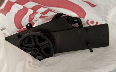 Two Like New Barn Door Wheels, Location Front Wood Shelves Two Like New Barn Door Wheels, Location Front Wood Shelves