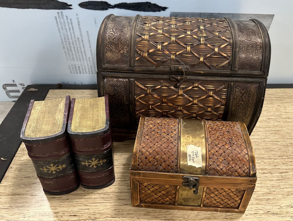 Decorative Storage Boxes, and Bookends, Location Right Metal Shelves Decorative Storage Boxes, and Bookends, Location Right Metal Shelves