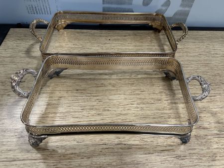Two Silver Plate Casserole Stands, Location Right Metal Shelves Two Silver Plate Casserole Stands, Location Right Metal Shelves
