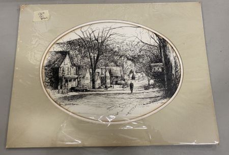 Framed Oval Matted Town Print, 16"w., 12"w., Location Back Metal Shelves Framed Oval Matted Town Print, 16"w., 12"w., Location Back Metal Shelves