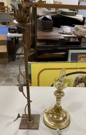 1280 Metal Candle Holder and Brass Lamp