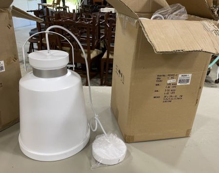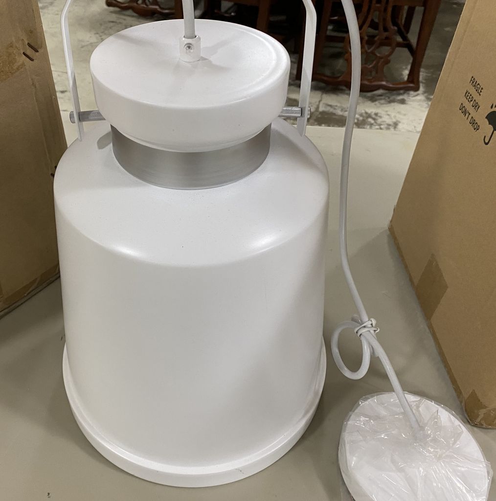 Pair of White Metal Hanging Light Fixture, Location Back Metal Shelves Pair of White Metal Hanging Light Fixture, Location Back Metal Shelves