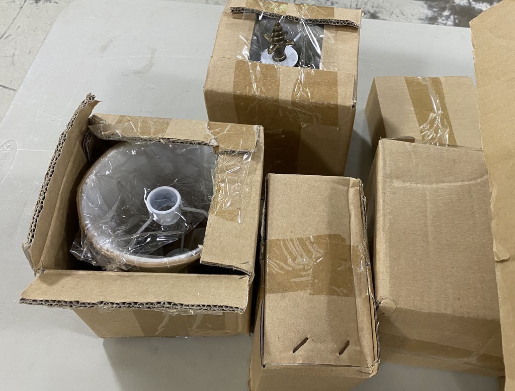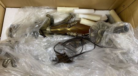 Decorative Resin Hanging Light Fixture, has chip on trim, in box, Location Back Metal Shelves Decorative Resin Hanging Light Fixture, has chip on trim, in box, Location Back Metal Shelves
