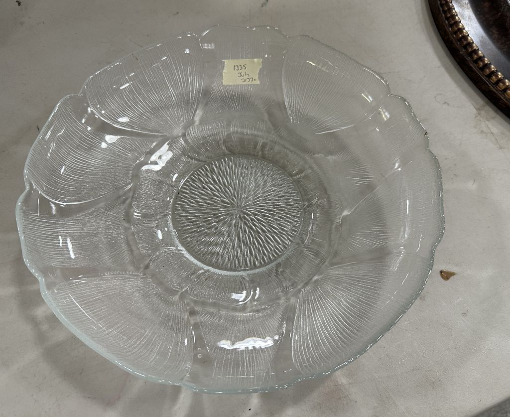 Pressed Glass Serving Bowl, 12"dia, Location Back Left Metal Shelves Pressed Glass Serving Bowl, 12"dia, Location Back Left Metal Shelves