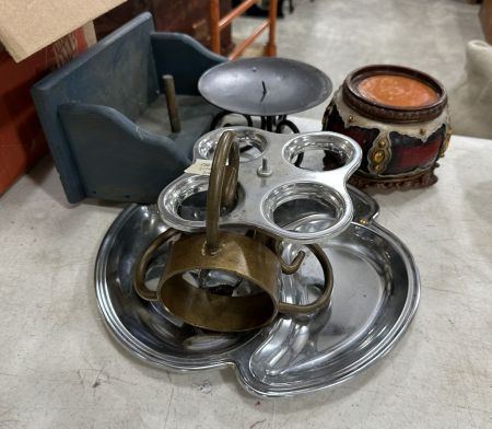 1367 Serving Tray, Candle Stands, Wood Shelf