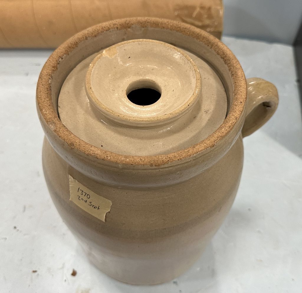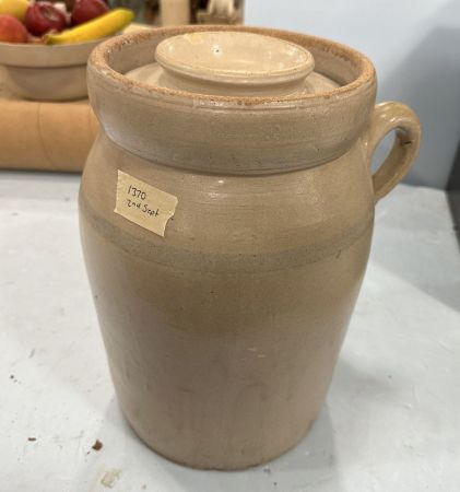 Butter Churn Stoneware Crock, Location Back Metal Shelves Butter Churn Stoneware Crock, Location Back Metal Shelves