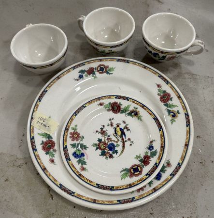 Syracuse China Plates and Cups, Location Back Metal Shelves Syracuse China Plates and Cups, Location Back Metal Shelves