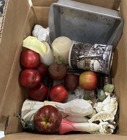 Box Lot of Decorative Items. Location Back Metal Shelves Box Lot of Decorative Items. Location Back Metal Shelves