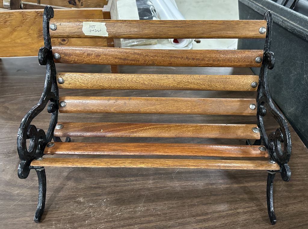 1477 Wood and Metal Doll Bench