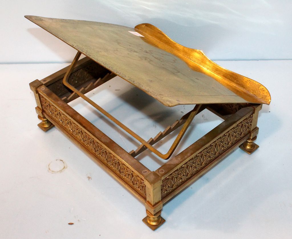 19th century brass, gothic, high style Bible or book adjustable stand; 14" w., 10 1/2" d. 19th century brass, gothic, high style Bible or book adjustable stand; 14" w., 10 1/2" d.