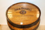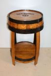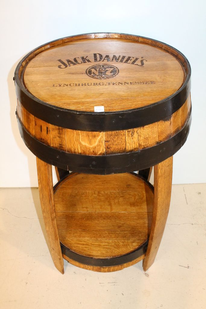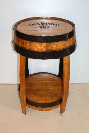 Original Jack Daniels whiskey barrel made into a table; 24" dia., 37" h. Original Jack Daniels whiskey barrel made into a table; 24" dia., 37" h.