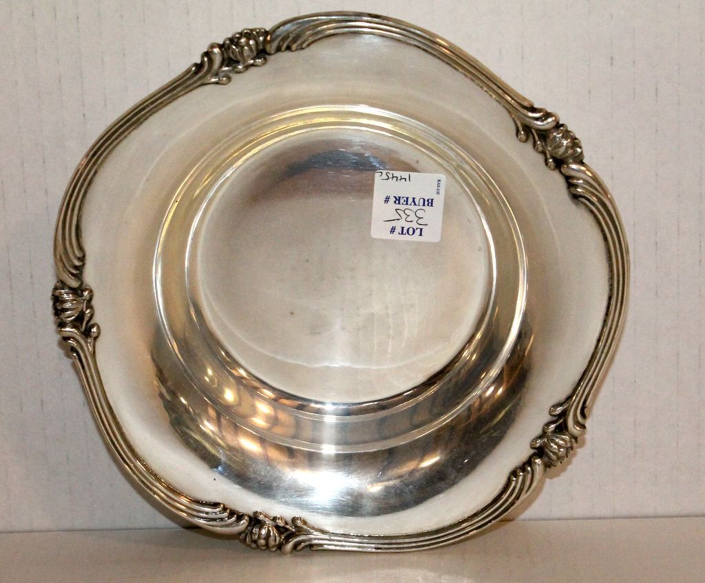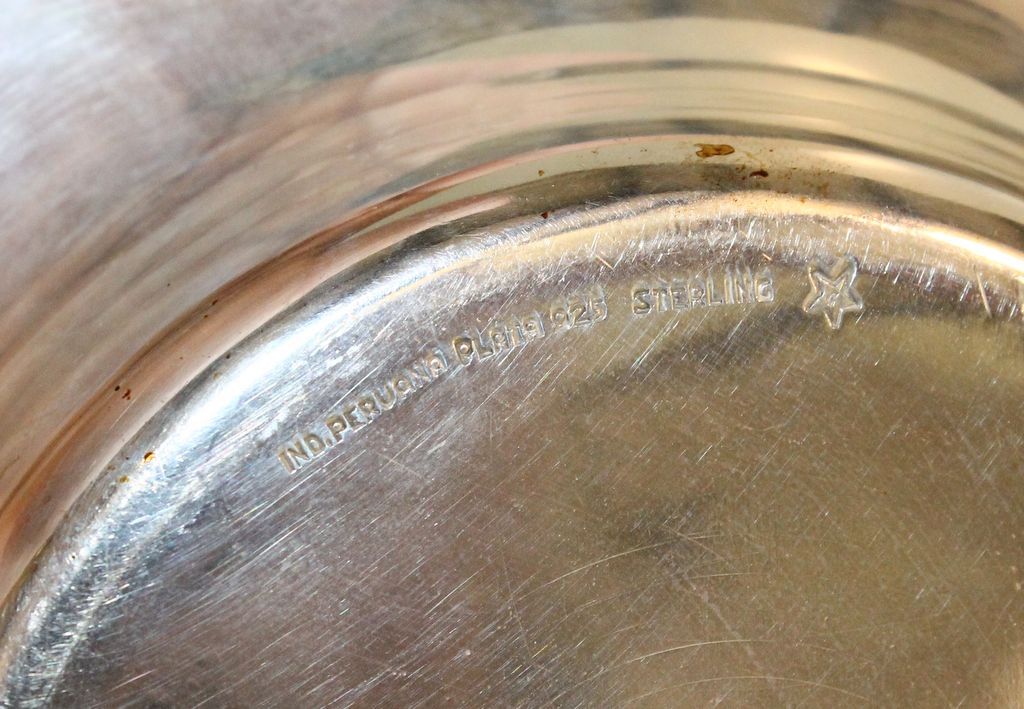 Sterling silver bowl, marked Ind. Peruana Plata 925; 8" dia., 1 1/2" h. 5.840 troy ounces. Sterling silver bowl, marked Ind. Peruana Plata 925; 8" dia., 1 1/2" h. 5.840 troy ounces.