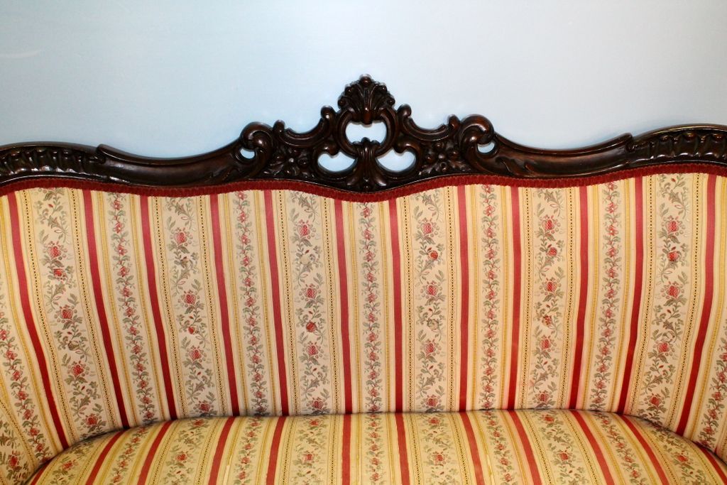 Open carved crest, mahogany settee; 50" w., 37" h., 26" d. Open carved crest, mahogany settee; 50" w., 37" h., 26" d.
