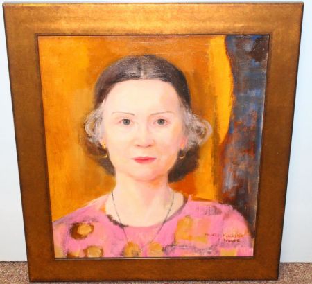 Oil on canvas, portrait of Leigh Latimer by Mildred Nungester Wolfe; 20" w., 22" h. Oil on canvas, portrait of Leigh Latimer by Mildred Nungester Wolfe; 20" w., 22" h.