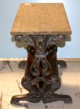 Contemporary high style marble top stand with iron base, gold highlights; 24" w., 14" d., 42 1/2" h. Contemporary high style marble top stand with iron base, gold highlights; 24" w., 14" d., 42 1/2" h.