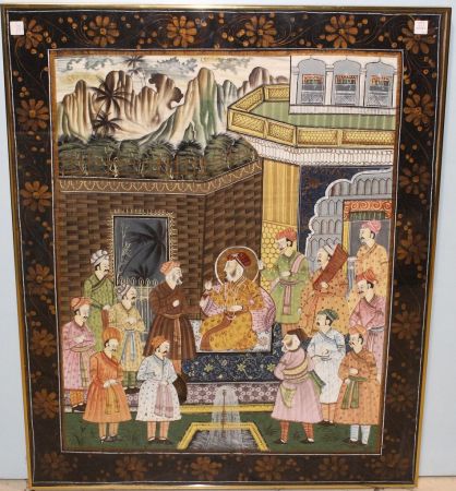 Hand painted middle Eastern court scene of mogul; 34" w., 41 1/2" h. Hand painted middle Eastern court scene of mogul; 34" w., 41 1/2" h.
