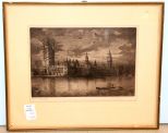 Pencil etching of Houses of Parliament, London, signed in pencil G. Huardel Bly; 14 1/2" w., 12 1/2" h. Pencil etching of Houses of Parliament, London, signed in pencil G. Huardel Bly; 14 1/2" w., 12 1/2" h.