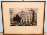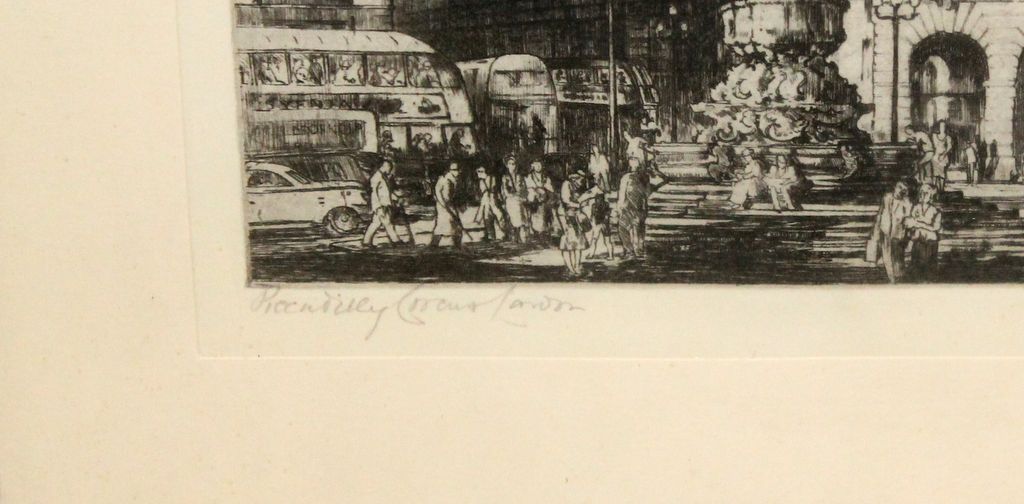 Piccadilly circus print by Henry Lambert, signed lower right; 13" w., 11 1/2" h. Piccadilly circus print by Henry Lambert, signed lower right; 13" w., 11 1/2" h.