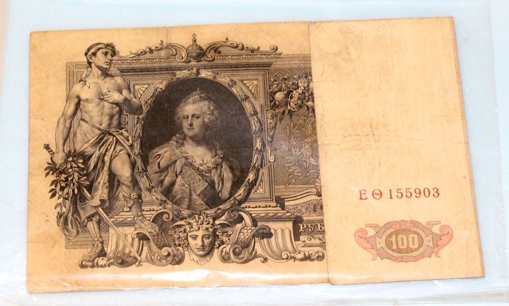 1910 Russian Imperial 100 Ruble Bank note, 1905 Czarist Russia, 3 Ruble Bank note 1910 Russian Imperial 100 Ruble Bank note, 1905 Czarist Russia, 3 Ruble Bank note