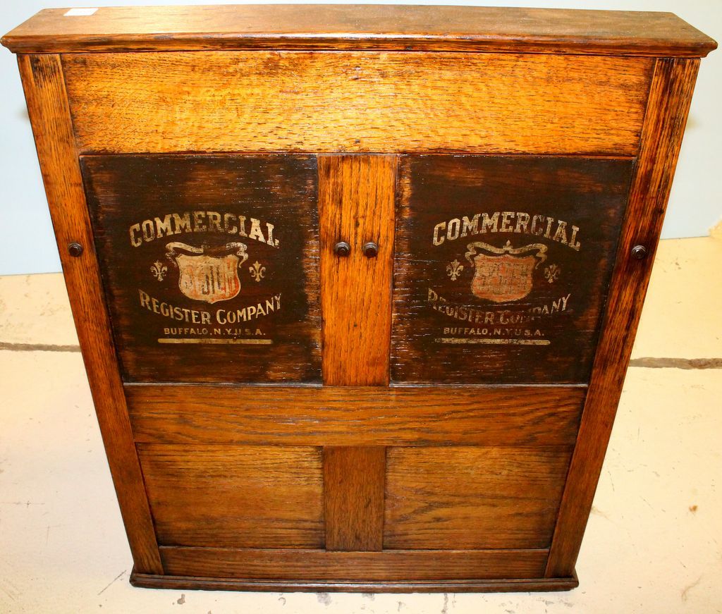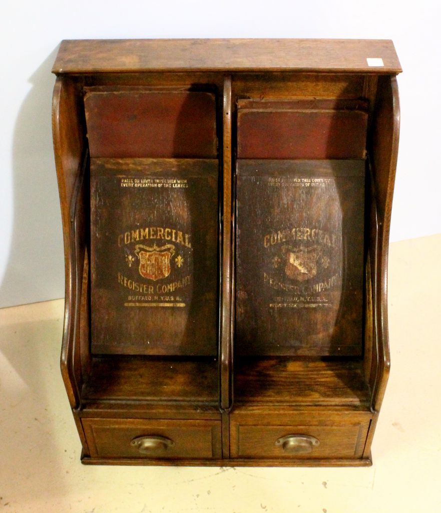 Early 1900's oak commercial account register cabinet with drawers; 23" w., 17" d., 28" h. Early 1900's oak commercial account register cabinet with drawers; 23" w., 17" d., 28" h.