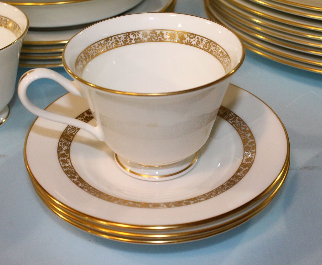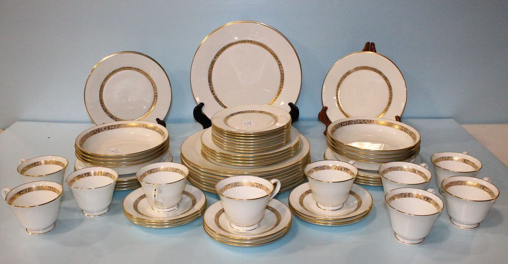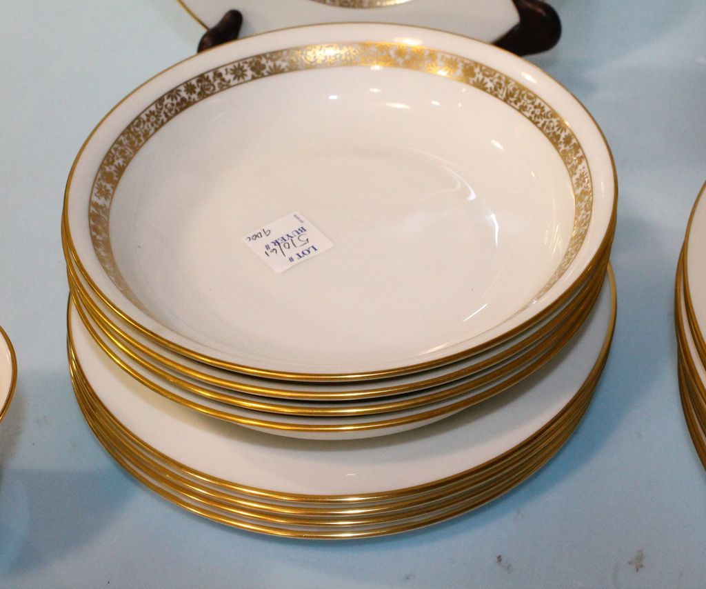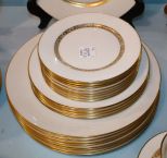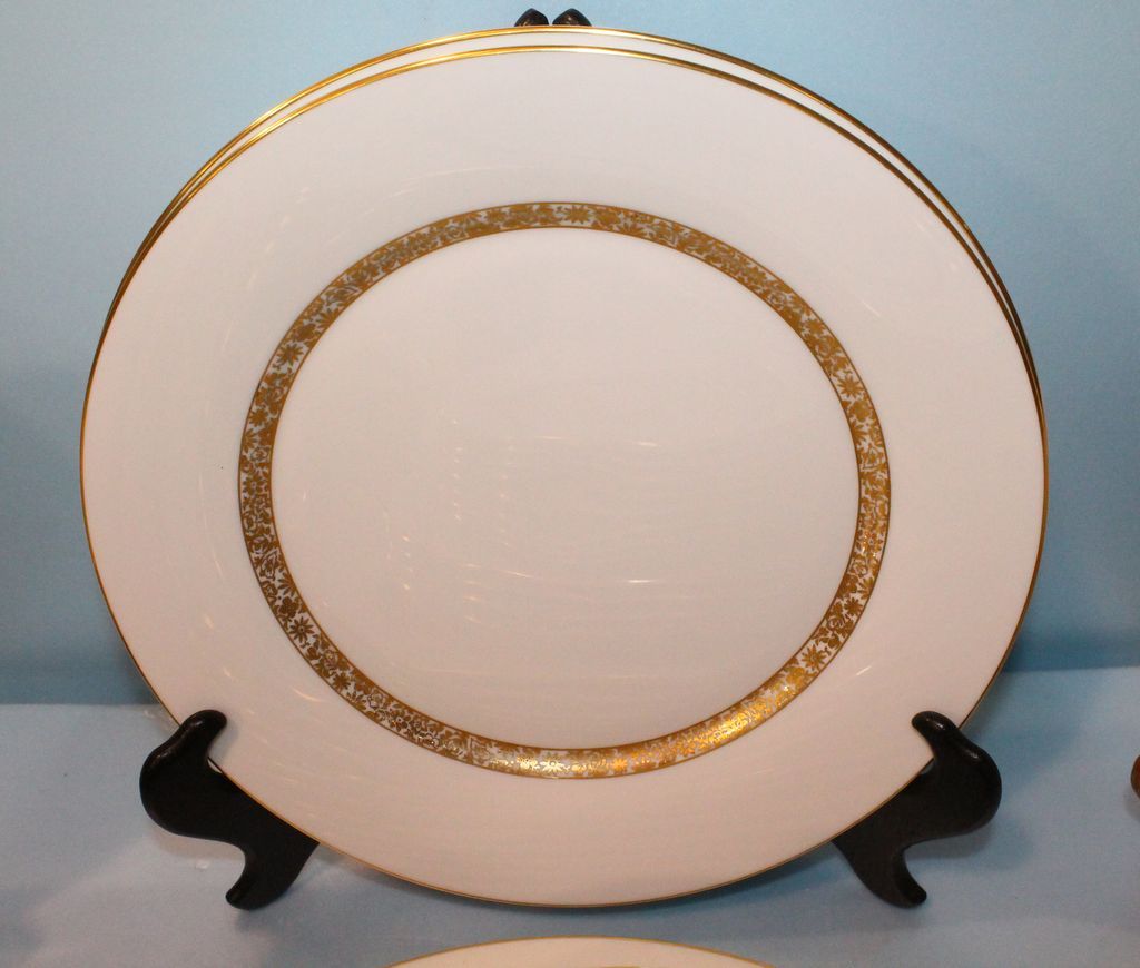 Set of Oxford (division of Lenox) "Golden Glen" china consisting of ten dinner plates, sixteen salad plates, eight soup bowls, eight bread/ butter, ten coffee cups, nine saucers; sixty-one total pieces Set of Oxford (division of Lenox) "Golden Glen" china consisting of ten dinner plates, sixteen salad plates, eight soup bowls, eight bread/ butter, ten coffee cups, nine saucers; sixty-one total pieces