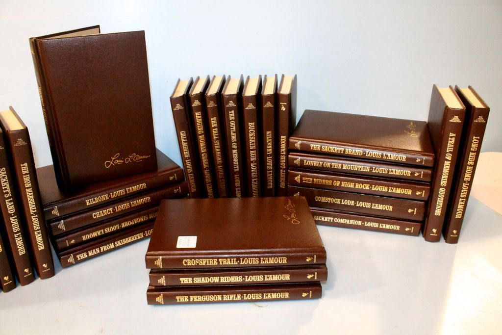 Set of 1983 Louis L'Amour leatherette books, 102 of 122 complete set Set of 1983 Louis L'Amour leatherette books, 102 of 122 complete set