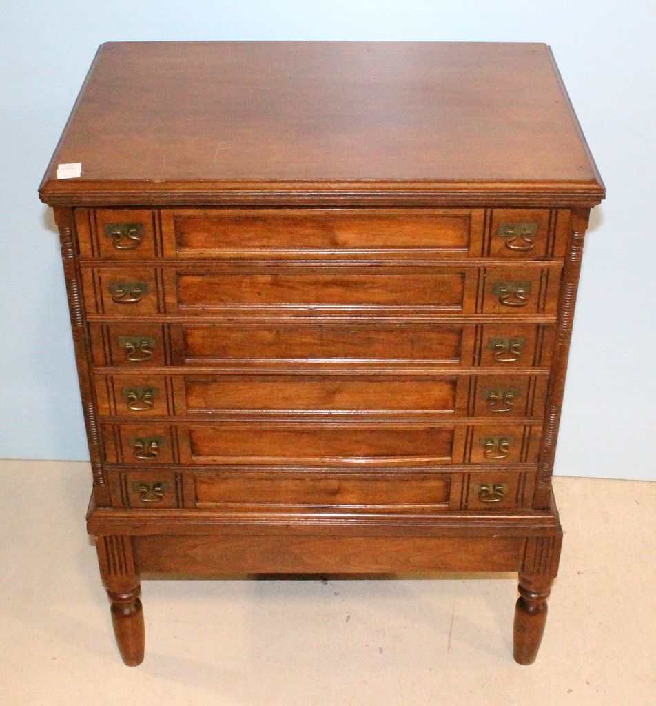 Victorian walnut six drawer spool cabinet on base. 24 1/2" w., 17 1/2" d., 31" h. Victorian walnut six drawer spool cabinet on base. 24 1/2" w., 17 1/2" d., 31" h.
