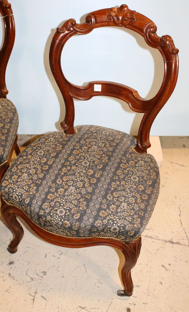 Set of three walnut 19th century Victorian side chairs; 21" w., 16" d., 35" h. Set of three walnut 19th century Victorian side chairs; 21" w., 16" d., 35" h.