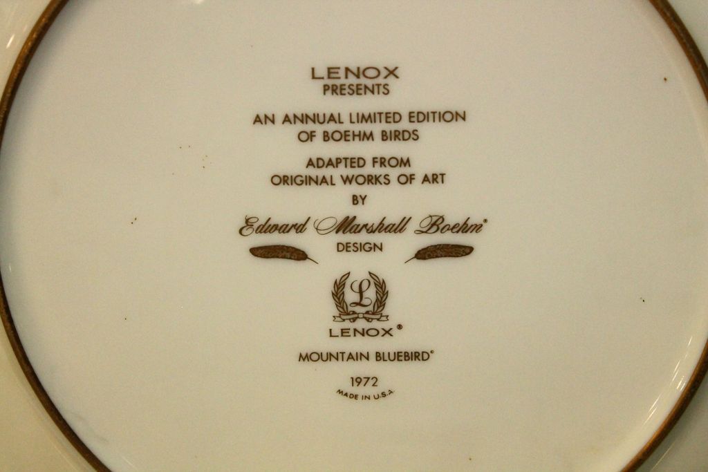 Set of five, 1972, Lenox (Edward Marshall) Boehm, limited edition bird plates; 10 1/2" dia. Set of five, 1972, Lenox (Edward Marshall) Boehm, limited edition bird plates; 10 1/2" dia.