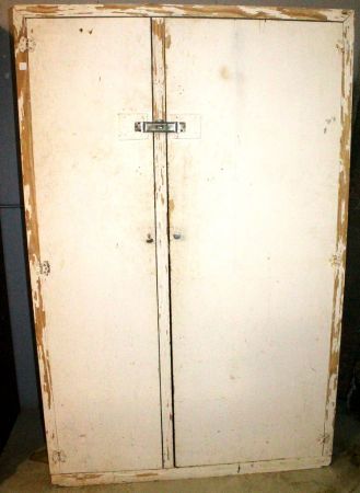 Primitive, painted white, two door cabinet;49" w., 25" d., 76" h. Primitive, painted white, two door cabinet;49" w., 25" d., 76" h.