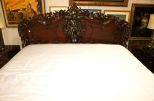 Mahogany hand crafted in the Rococo style king size bed. Center cartouche with flowers and foliage on each side, pierce carving in center of headboard, Mattress and bedding not included.; 84''w., 59''h. Mahogany hand crafted in the Rococo style king size bed. Center cartouche with flowers and foliage on each side, pierce carving in center of headboard, Mattress and bedding not included.; 84''w., 59''h.
