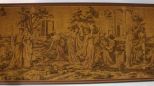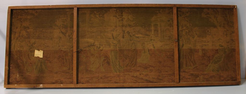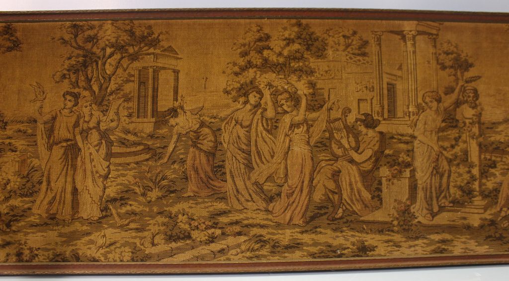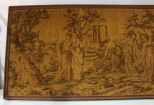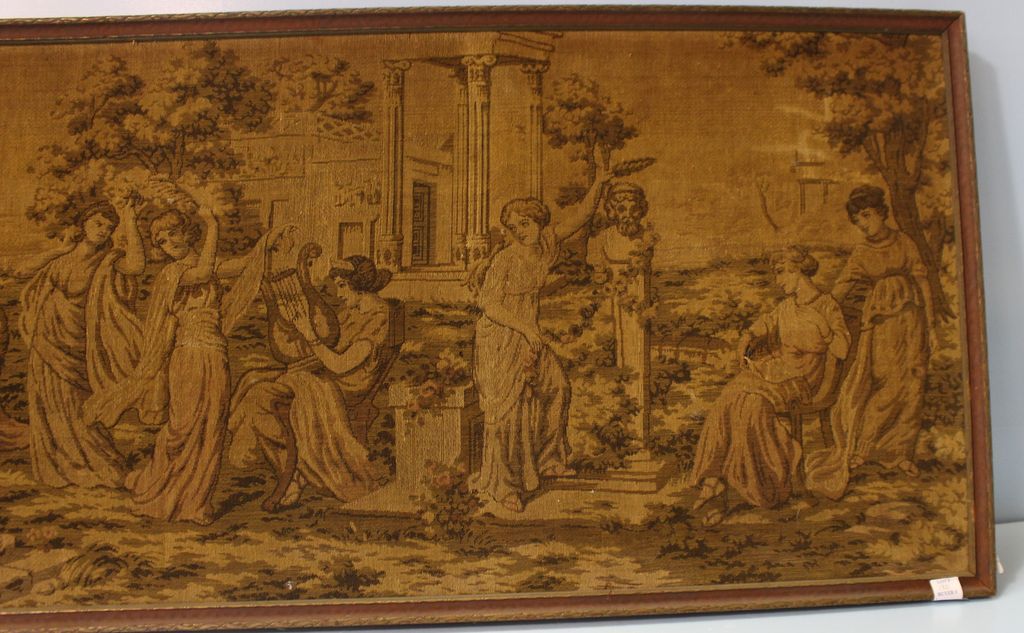 Early twentieth century tapestry of ladies in courtyard; 58" w., 20 1/2" h. Early twentieth century tapestry of ladies in courtyard; 58" w., 20 1/2" h.