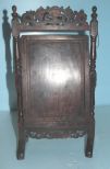 19th century rosewood with mother of pearl small table mirror having foo dogs carved as a crest; 10" w., 18" h. 19th century rosewood with mother of pearl small table mirror having foo dogs carved as a crest; 10" w., 18" h.
