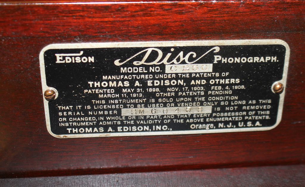 Edison 1917 Diamond Disc (thick records) phonograph. There are two doors which open to reveal two slide out drawers. Has the original book with it, and works well; 20 1/2" w., 22" d., 51" h.0 Edison 1917 Diamond Disc (thick records) phonograph. There are two doors which open to reveal two slide out drawers. Has the original book with it, and works well; 20 1/2" w., 22" d., 51" h.0