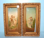 Pair of Victorian oil on board paintings of couples; 8 1/2" w., 15" h. Pair of Victorian oil on board paintings of couples; 8 1/2" w., 15" h.