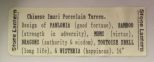 Chinese Imari porcelain tureen design of pawlonia (good fortune), bamboo (strength), mums (virtue), dragons (wisdom), tortoise shell (long life), and wisteria (happiness). Tureen has under plate. Underplate, 13" w.; tureen, 14" w., 10 1/2" h. Chinese Imari porcelain tureen design of pawlonia (good fortune), bamboo (strength), mums (virtue), dragons (wisdom), tortoise shell (long life), and wisteria (happiness). Tureen has under plate. Underplate, 13" w.; tureen, 14" w., 10 1/2" h.