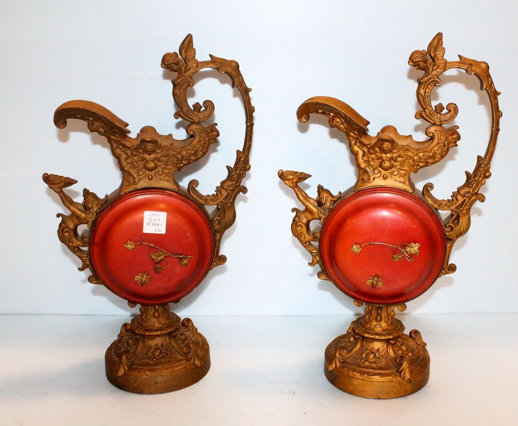 Pair of early 20th century brass ewers; 16''h. Pair of early 20th century brass ewers; 16''h.