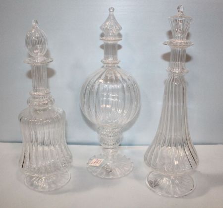 Three contemporary two company decanters; 14''h. Three contemporary two company decanters; 14''h.