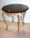 Painted and distressed Queen Anne style table with scallop top; 28''dia., 28''h. Painted and distressed Queen Anne style table with scallop top; 28''dia., 28''h.