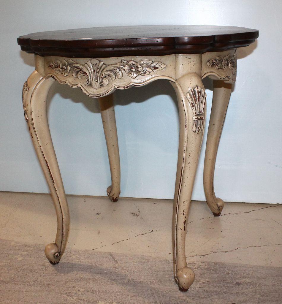 660 Painted and Distressed Queen Anne Style Table with Scallop Top