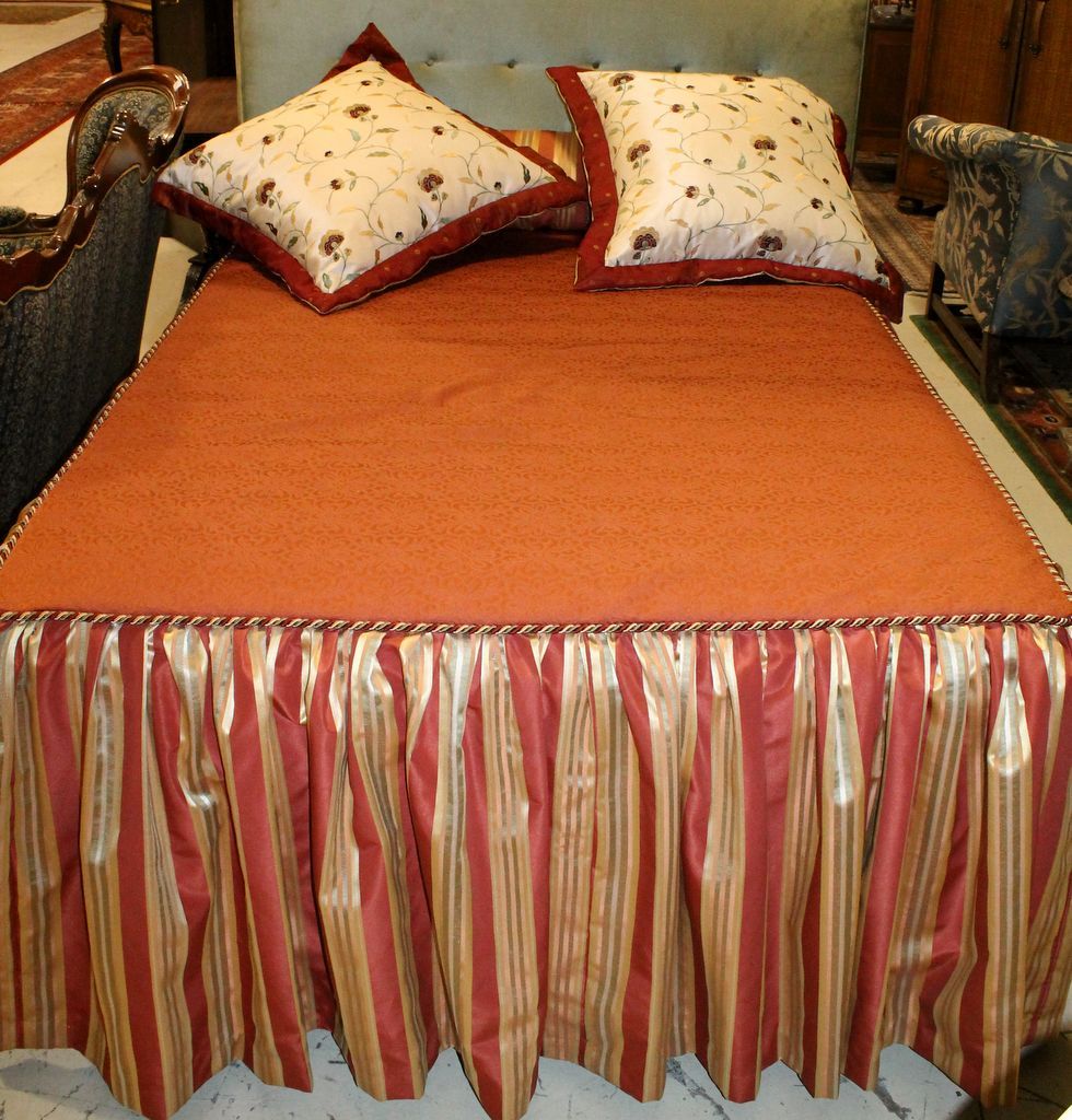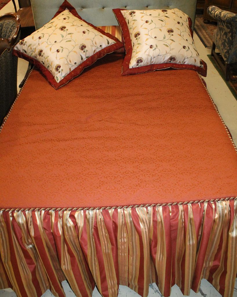 Custom made cotton damask/ stripe, double size bedspread with three co-ordiante pillows Custom made cotton damask/ stripe, double size bedspread with three co-ordiante pillows