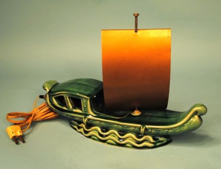 1950s TV canoe lamp with brass sail 15"x9 1/2 1950s TV canoe lamp with brass sail 15"x9 1/2