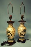 Pair Lamps green & white dragon design porcelain lamps 29"h Pair Lamps green & white dragon design porcelain lamps 29"h