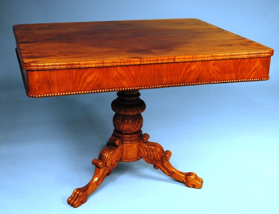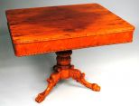 19th century mahogany center table with beaded apron, carved center pedestal supported by three carved paw feet. 39 1/2" w x 33 1/2" d x 28 1/2" h 19th century mahogany center table with beaded apron, carved center pedestal supported by three carved paw feet. 39 1/2" w x 33 1/2" d x 28 1/2" h